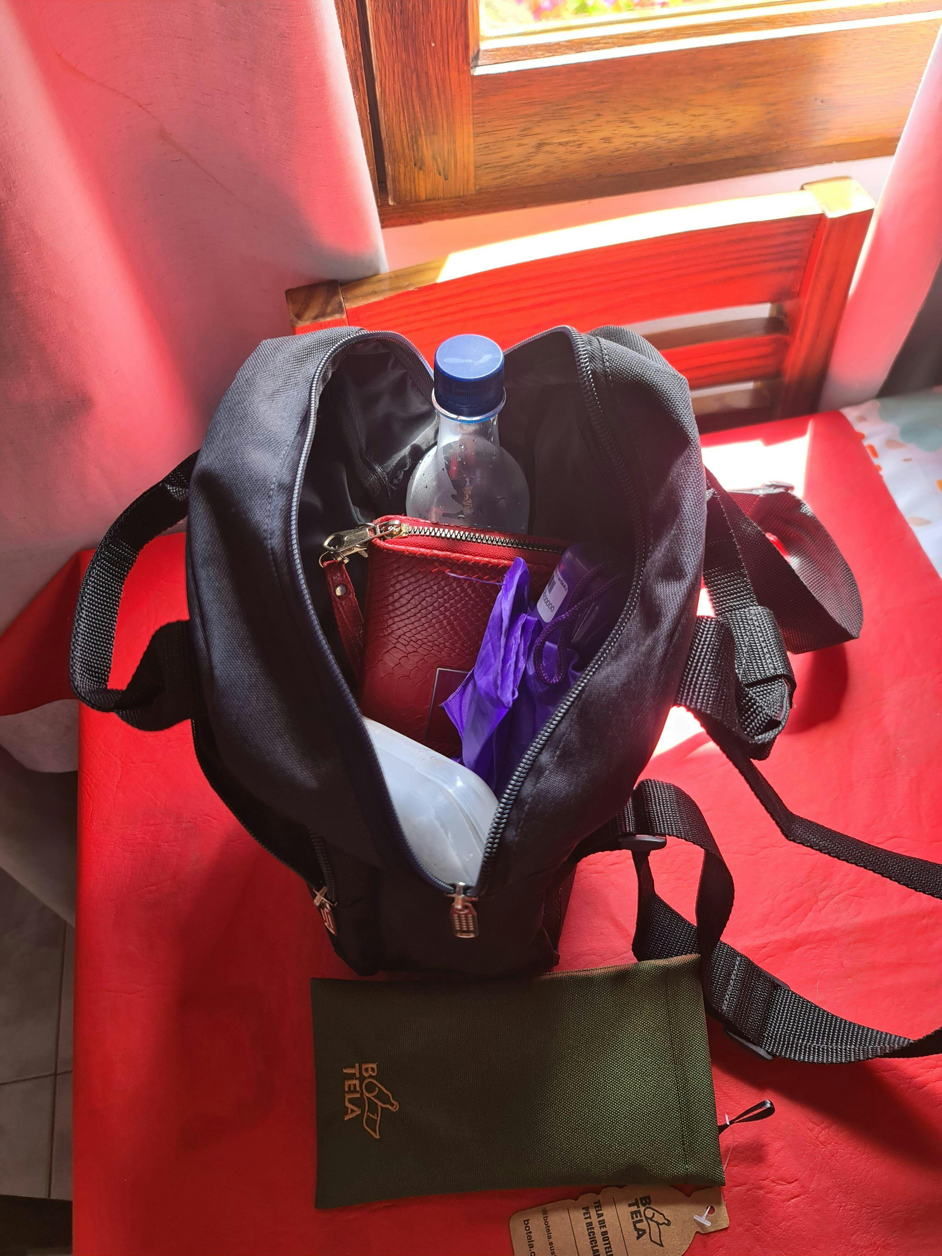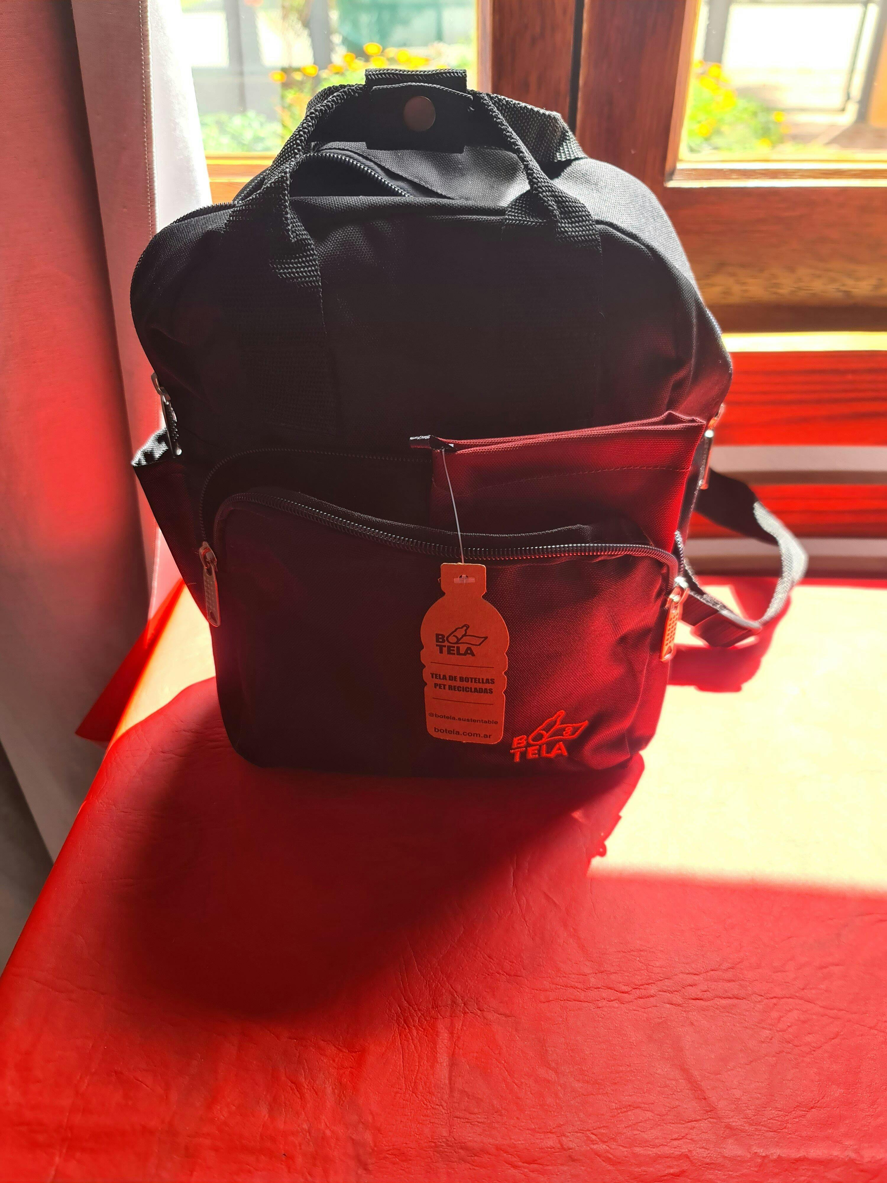 Hermosa, con varios bolsillos ,tamaño justo y entra todo,botella,billetera y más. El envío perfecto ,llego rapidísimo.los super recomiendo y felicitaciones por reciclar!👏👏👌