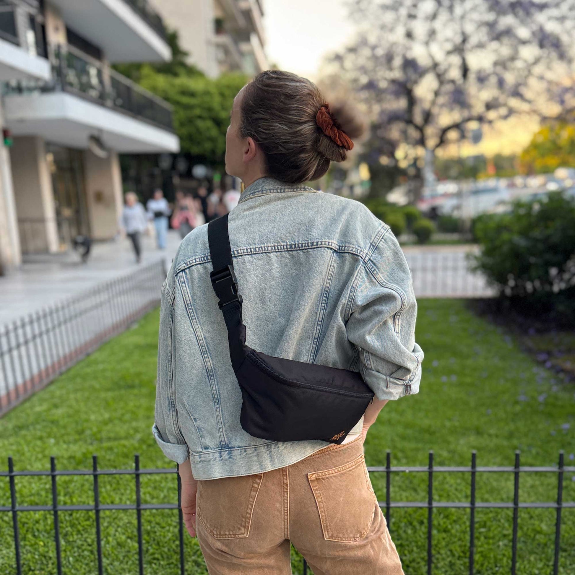 Riñonera XL confeccionada con tela 100% reciclada de botellas plásticas e impermeable. ideal para acompañarte todos los días con estilo y funcionalidad.